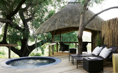 Este alojamiento encaramado entre un dosel de árboles centenarios, sobre cubiertas con brillantes arbustos verdes por debajo del techo sobresaliente, ofrece una privacidad al completo. Y si elijes pasar tu tiempo libre en la piscina privada frente al río, recostado en el sofá de la sala de estar (como si estuvieses en casa), sumergirte en un baño de burbujas o sencillamente leer un buen libro frente al paisaje (y con un sutil aroma y sonido particularmente natural de fondo), sin duda éste es tu lugar favorito de estadía en tu viaje de safari por Sudáfrica.