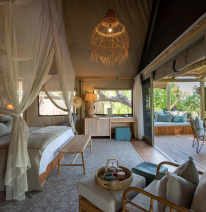 En Aventura África nos encanta trabajar con Mpala Jena, el alojamiento de lujo ideal en las Cataratas Victoria. Situado a lo largo de las hermosas orillas arboladas del río Zambeze, Mpala Jena es un paraíso íntimo que muestra el concepto de "Lujo Despreocupado" en su máxima expresión. Su equipo de arquitectos e interioristas creó un santuario que combina elementos naturales, como techos de paja y tiendas de lona de lujo, con un diseño elegante y relajado. Un lugar realmente especial ya que la ubicación, en el Parque Nacional Zambezi de Zimbabue, ofrece oportunidades únicas para disfrutar de la vida animal en safaris, cruceros y caminatas. Con una increíble concentración de búfalos y elefantes entre junio y octubre, y una gran diversidad de aves todo el año, Mpala Jena brinda experiencias inolvidables para los amantes de la naturaleza y la aventura.
