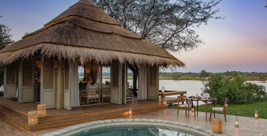 Imagina tres noches en el impresionante Mpala Jena, un oasis de lujo y aventura en el corazón del Parque Nacional de Zambezi, Zimbabue. Desde el momento descubrirás un mundo de maravillas naturales y experiencias emocionantes. Disfruta mientras navegas por las aguas del poderoso río Zambezi, contemplando vistas impresionantes y la posibilidad de avistar hipopótamos y cocodrilos en las orillas. Deleitate con cenas bajo las estrellas, saboreando delicias culinarias mientras escuchas los sonidos de la naturaleza que te rodea. Visita las majestuosas Cataratas Victoria, te dejarán sin aliento, con su cascada rugiente y su belleza natural incomparable. Durante tres noches, cada momento en Mpala Jena es un un momento mágico e inolvidable, una experiencia que te conecta con la grandeza de la naturaleza tan única de África. El suelo de arena en el área del bar, y la piscina adyacente, crean el escenario perfecto para relajarse descalzo después de un safari matutino o un crucero por el río.